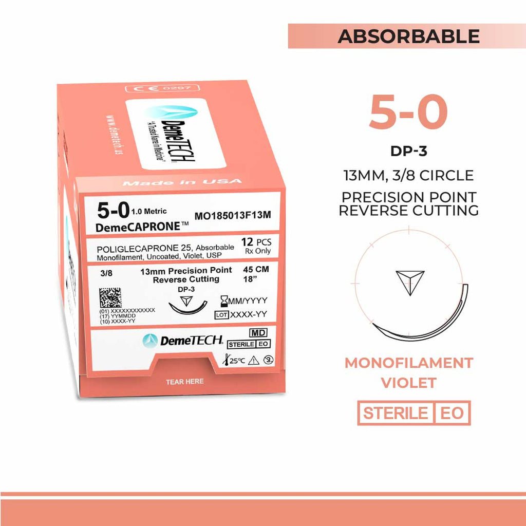 Poliglecaprone 25` (PGCL), 5-0, 18", DP-3 Absorbable Suture, Precision Point Reverse Cutting, Violet 12/Box